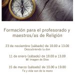 La delegación de enseñanza de la diócesis de Teruel y Albarracín organiza una formación para el profesorado de Religión. Serán tres jornadas que se celebrarán en sábado, en el Salón de Actos del Seminario de Teruel.