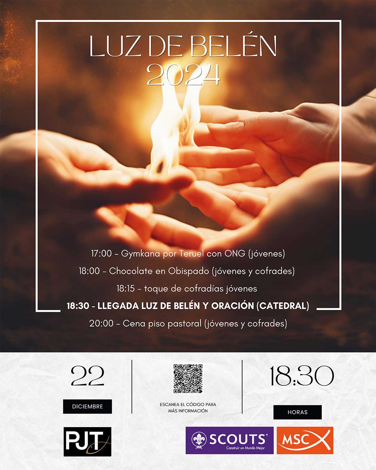 La Delegación de Pastoral Juvenil organiza la venida de la Luz de Belén a Teruel con el siguiente programa: