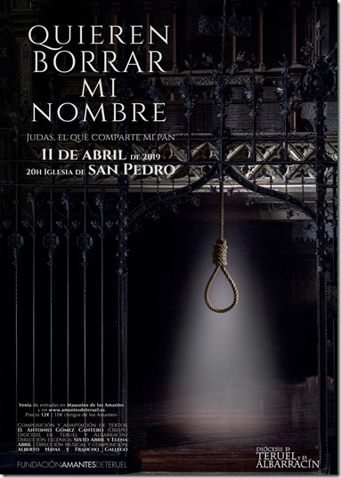 Producción teatral “Quieren borrar mi nombre. Judas, el que comparte mi pan”, en la que don Antonio Gómez, nuestro obispo, ha adaptado y compuesto el guión de la misma. La obra es una producción de la Fundación Amantes con la dirección escénica de Sixto y Elena Abril y la dirección musical de Alberto Navas y Francho Gallego.
