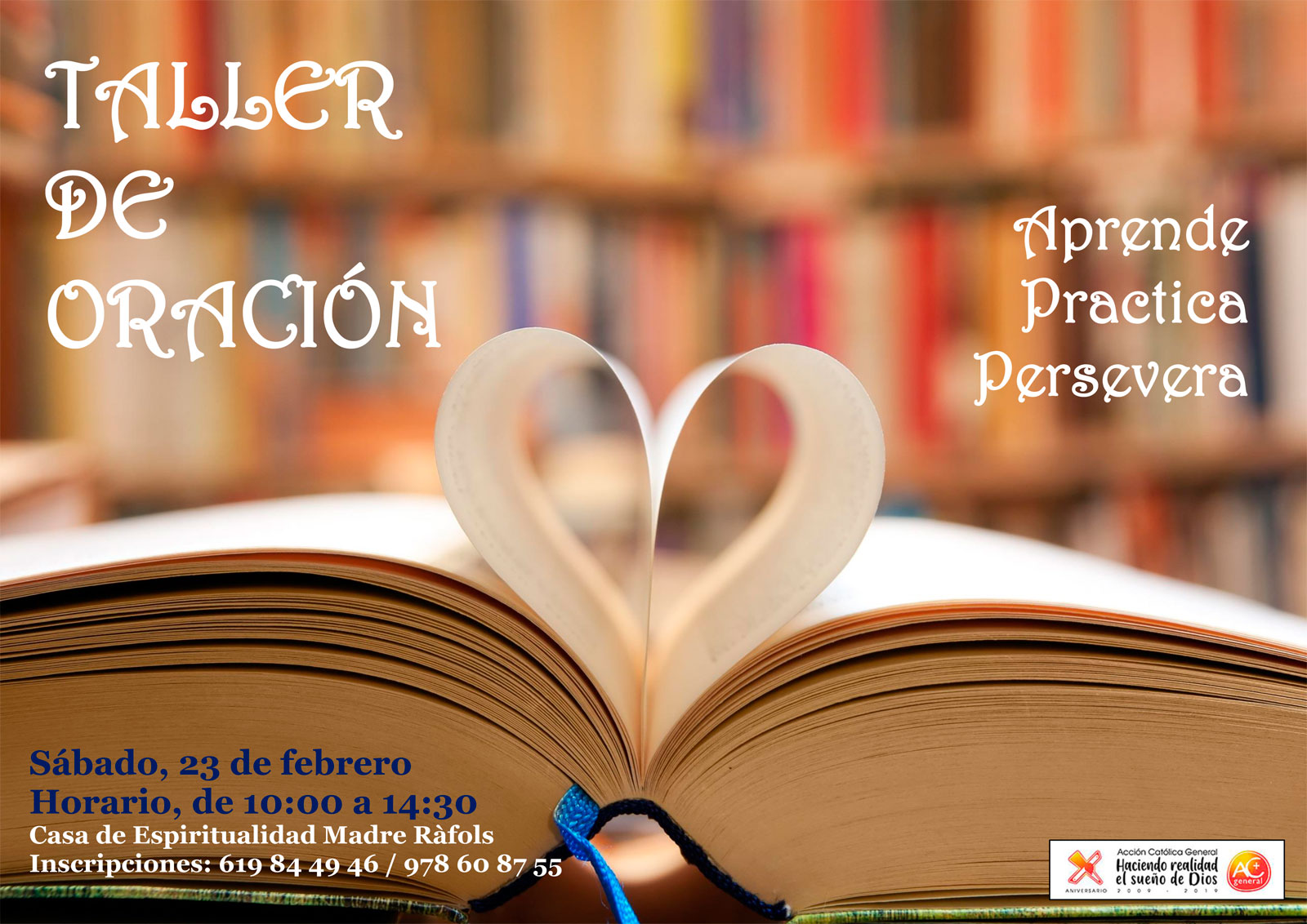 Seguimos en clave de Comunidad orante, y desde la Acción Católica General hemos preparado un TALLER DE ORACIÓN que tendrá lugar el próximo 23 de febrero, sábado, en la Casa de Espiritualidad Madre Ràfols, de las 10 a las 14:30 horas. Te invitamos y animamos a participar.