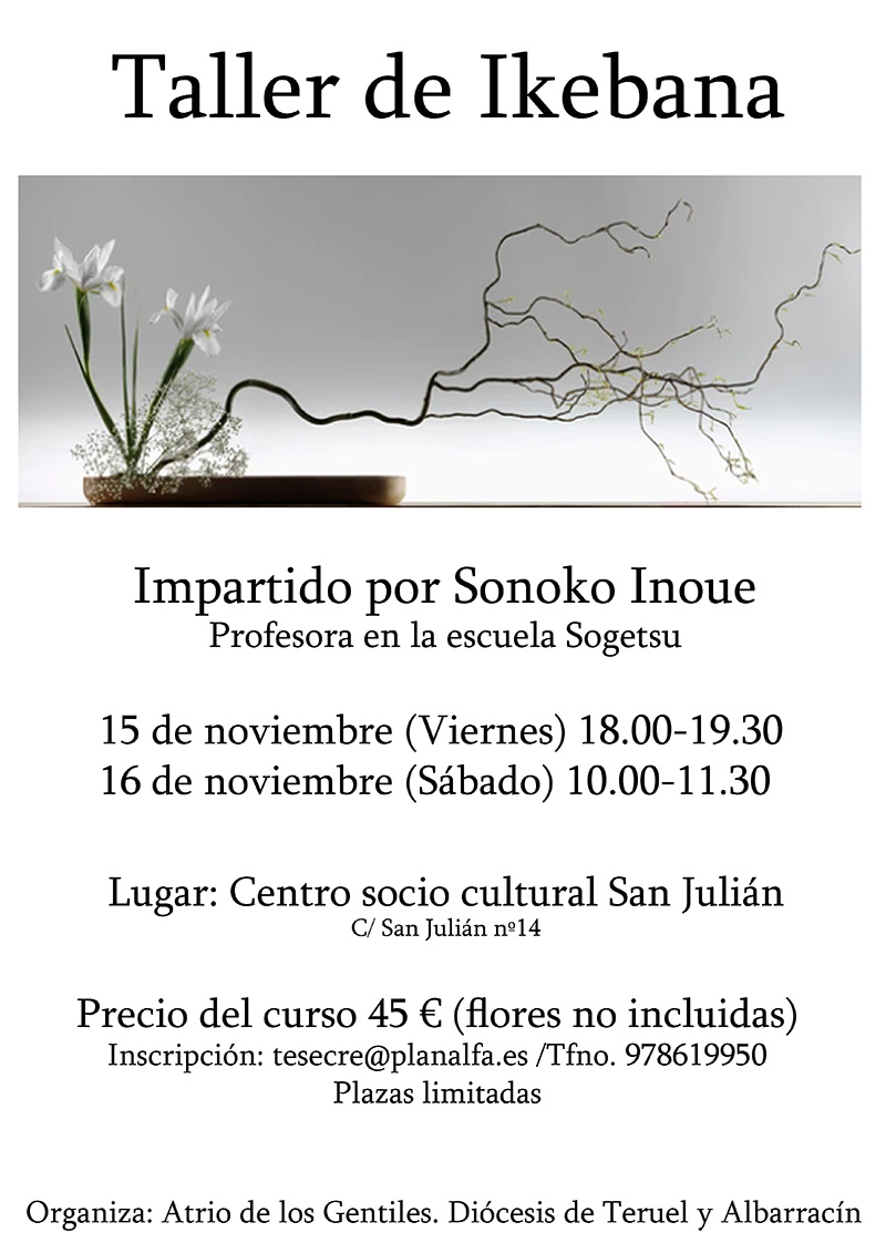 Taller de Ikebana en Teruel organizado por la delegación Atrio de los Gentiles Nov 15 18:00 - 19:30 Taller de Ikebana en Teruel organizado por la delegación Atrio de los Gentiles