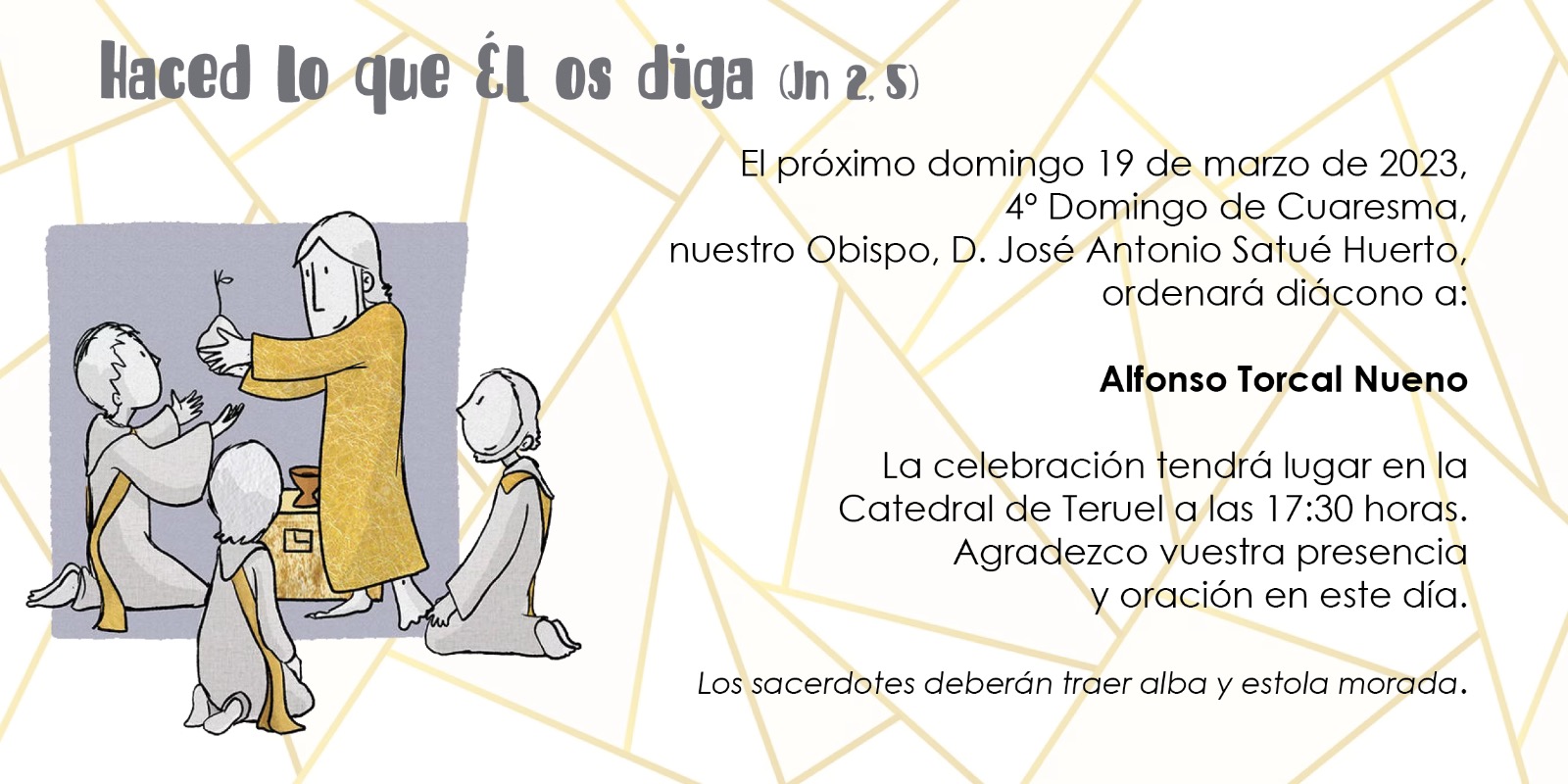 Ordenación diaconal de Alfonso Torcal Mar 19 Featured 17:30 - 19:00 Ordenación diaconal de Alfonso Torcal