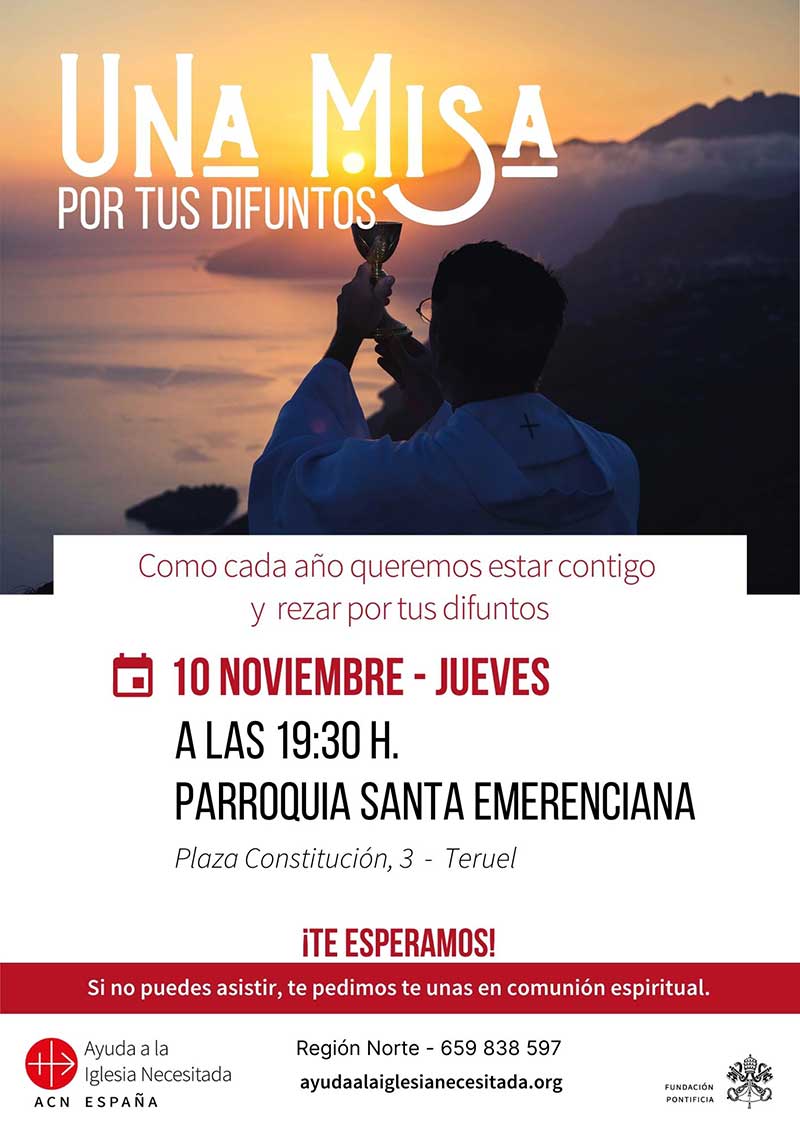 Misa por los difuntos de Ayuda a la Iglesia Necesitada Nov 10 19:30 - 20:30 Misa por los difuntos de Ayuda a la Iglesia Necesitada
