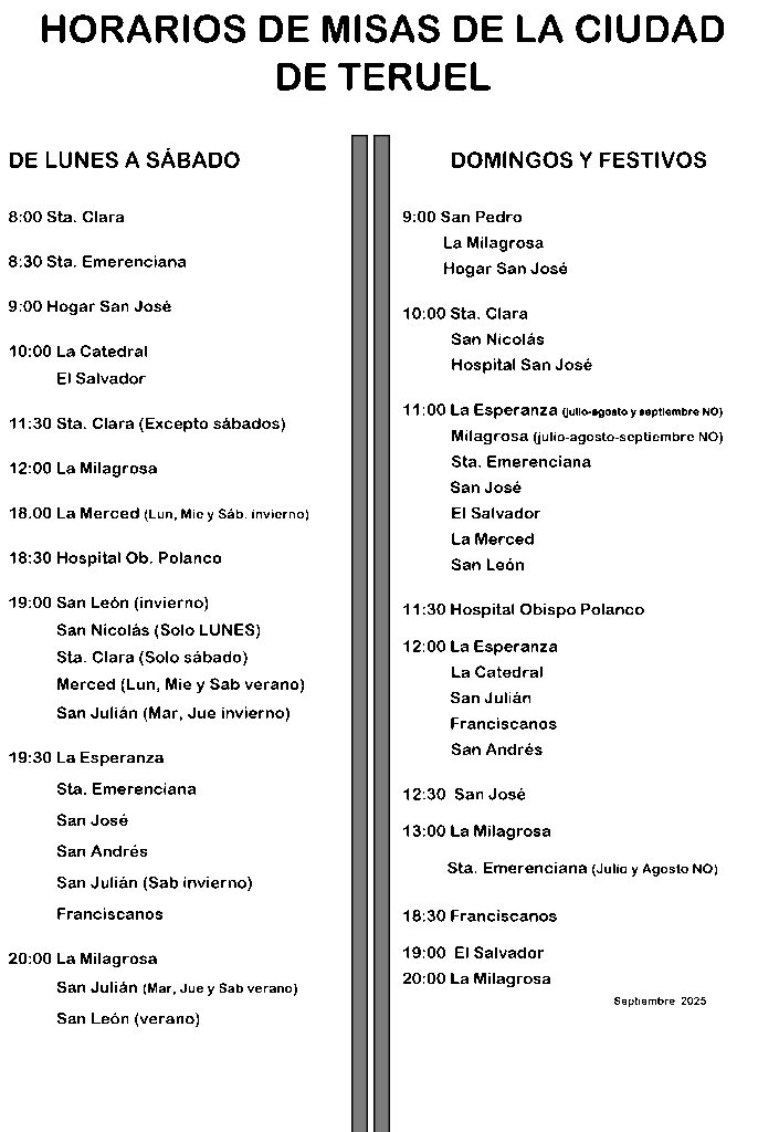 13:00 ALBARRACÍN (PARROQUIA DE SANTIAGO); POZONDÓN; SANTA EULALIA DEL CAMPO; FRIAS DE ALBARRACÍN.