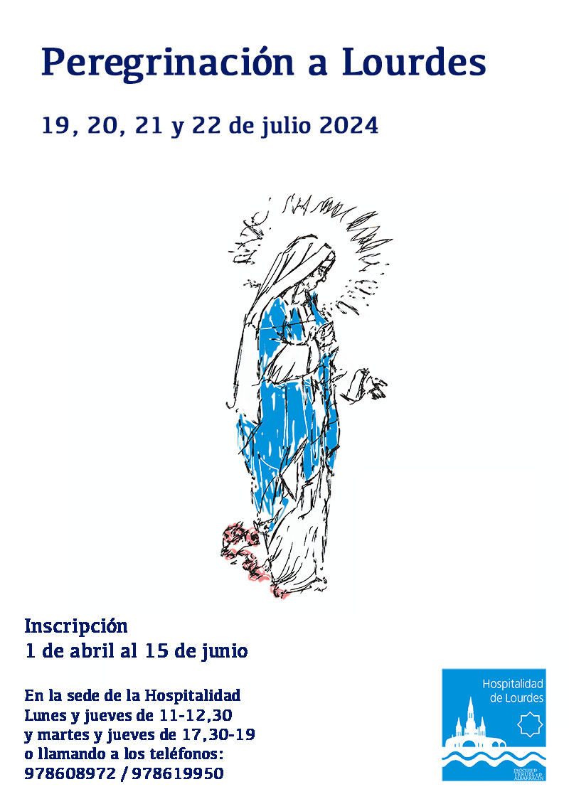 Del 15 al 18 de julio será nuestra primera peregrinación a Lourdes. Organizada por la Hospitalidad de Lourdes. Inscripción y más información del 4 de abril al 1 de junio. En la sede de la Hospitalidad Lunes de 11:00 a 12:30 y martes de 17:00 a 18:30, o llamando al telefono 978608972