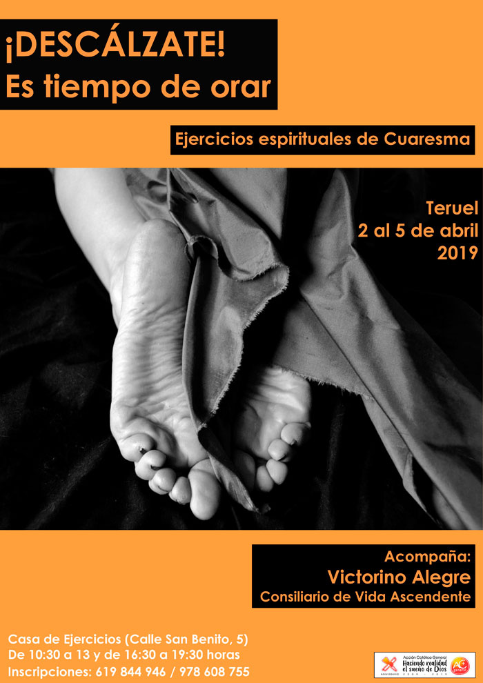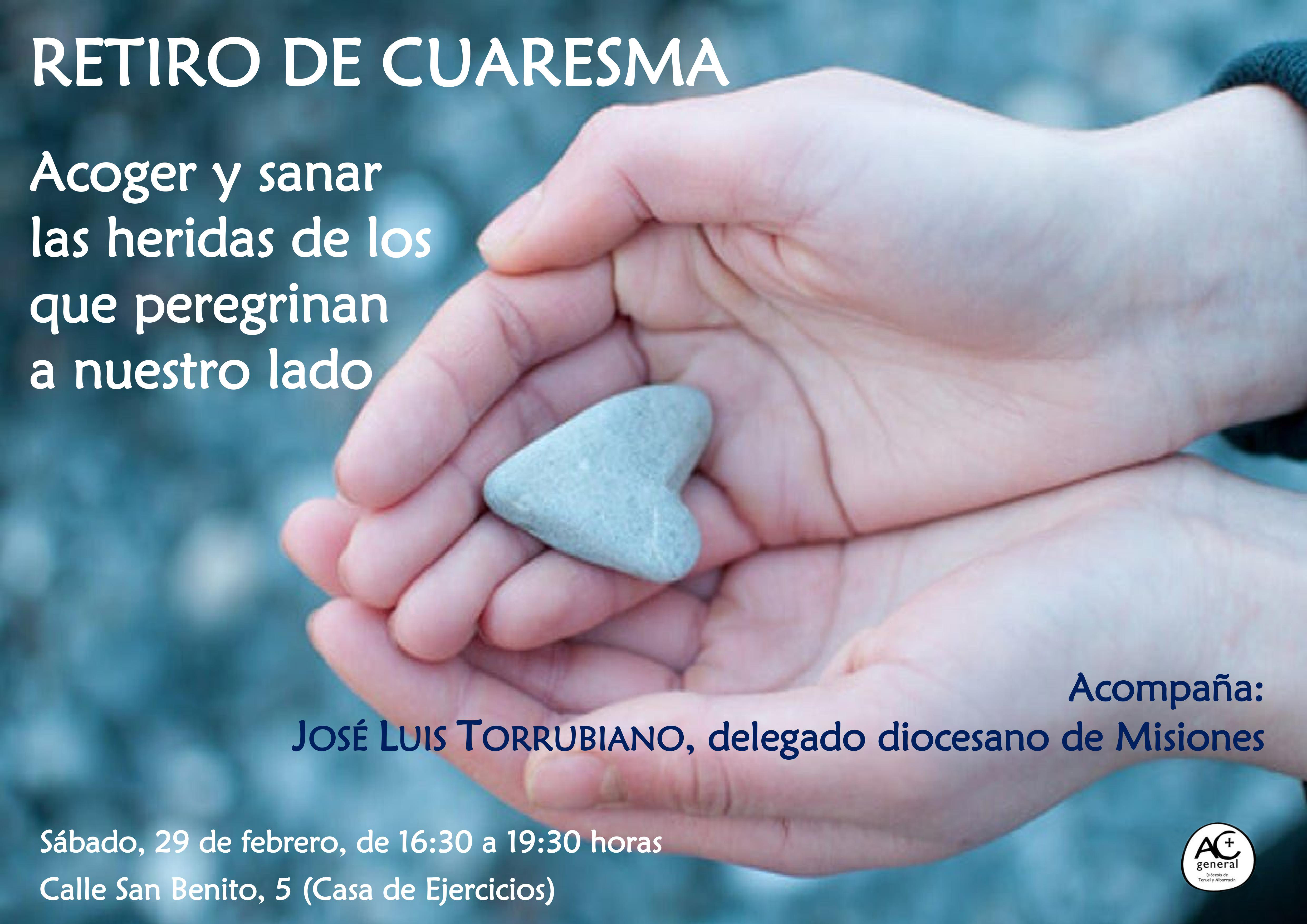 Casa de Ejercicios de San Benito en Teruel Teruel, Teruel, EspañaSe acerca la Cuaresma y en este tiempo os invitamos a hacer un alto en el camino, para sosegaos de tanto ajetreo, y venir a un sitio tranquilo, a un lugar apartado del bullicio agobiante, a un lugar apropiado para encontraros con Dios, en el retiro que la ACG ha organizado. Acompañados por José Luis […]